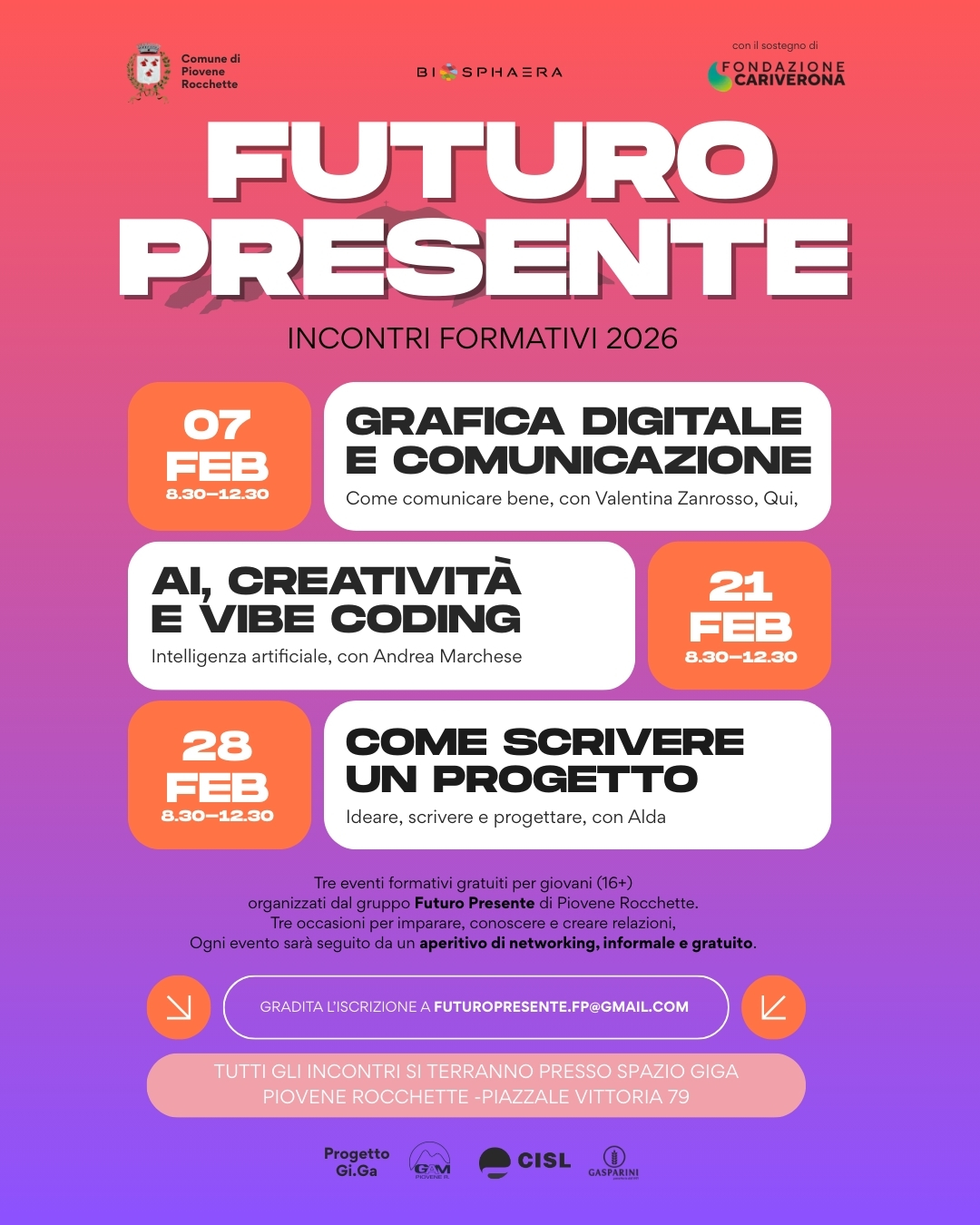 Con il supporto di Biosphera e di professionisti del settore, il percorso intende fornire gli elementi di base per comprendere come comunicare in modo efficace attraverso l’utilizzo degli strumenti grafici, favorendo lo sviluppo di competenze creative e comunicative.