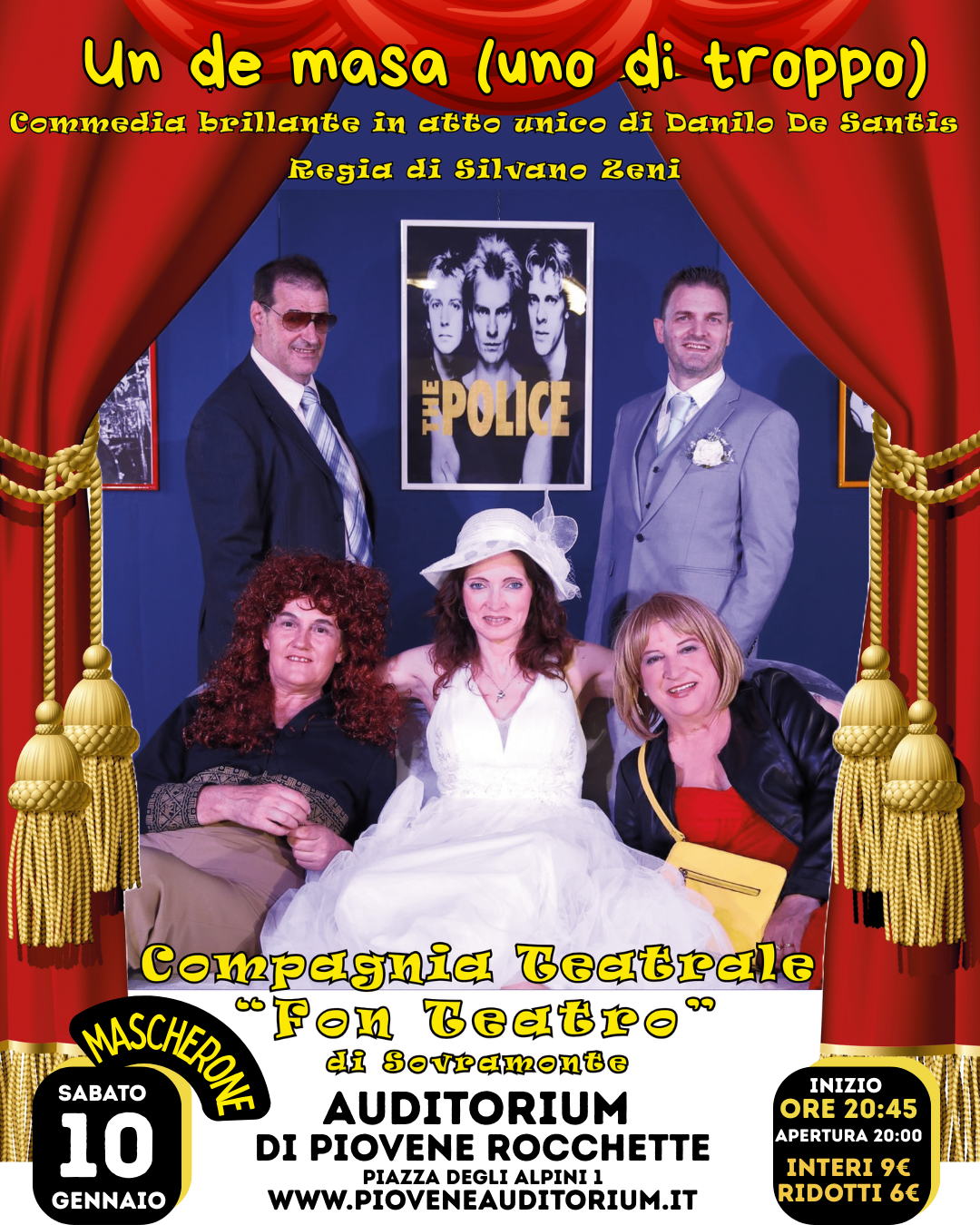 La prima compagnia in gara è Fon Teatro di Sovramonte (BL) con la Commedia Un de masa (uno di troppo)